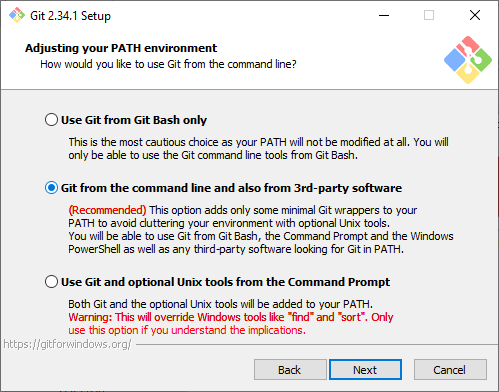 Важная настройка! Выбираем средний пункт чтобы другой софт мог использовать Git тоже.